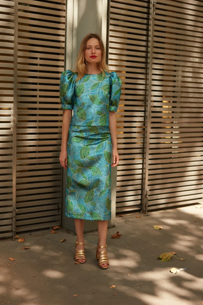 La jupe Vénus est une pièce forte qui se suffit à elle-même et garantit un look résolument glamour. Elle offre une silhouette mode et structurée et peut être portée avec la blouse Vénus pour un total look !
