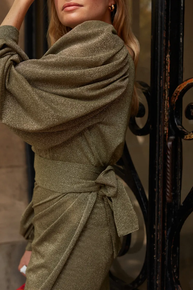 La blouse Jersey Or est une pièce élégante et ultra confortable. Ses manches larges resserrées au niveau des poignets vous confèrent une allure sophistiquée et glamour. Vous pouvez porter cette pièce au-dessus de notre robe Jersey Or pour couvrir vos épaules, ou encore l’associer à un pantalon pour un look plus décontracté.