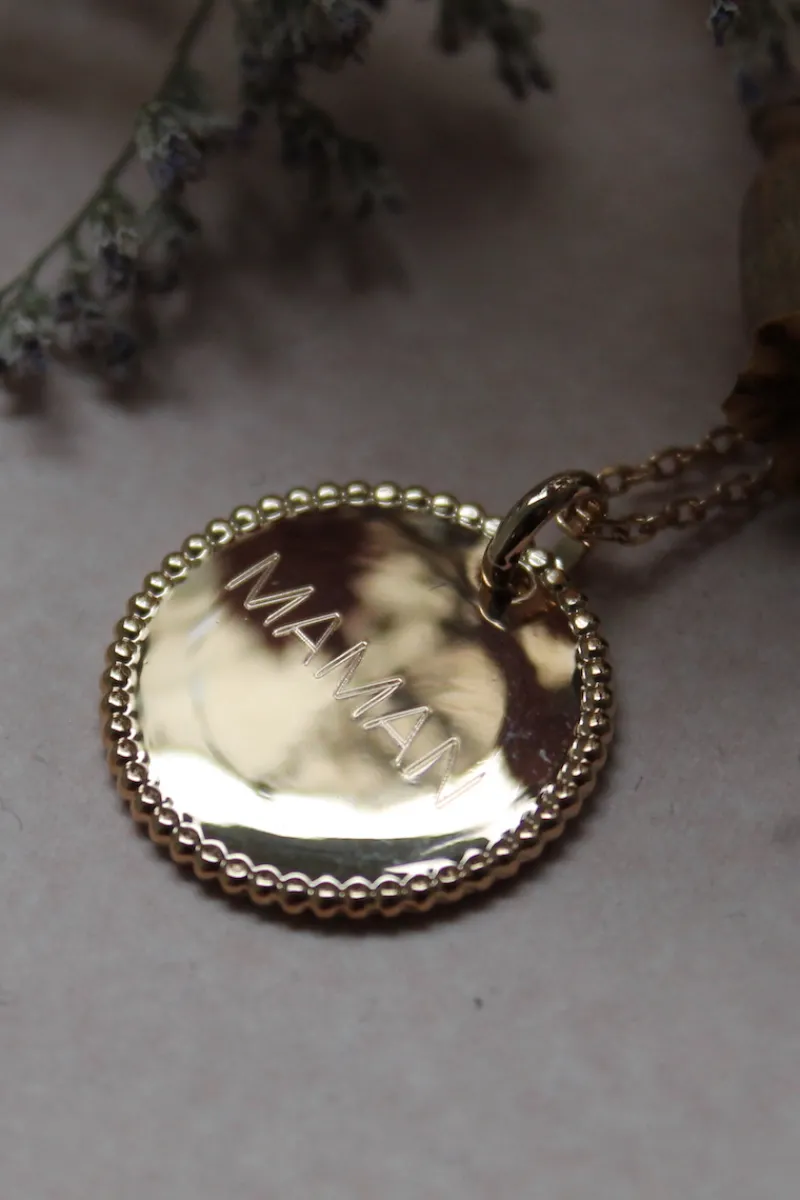 La chaîne et la médaille sont fabriquées en Thaïlande puis plaqué or à Paris ainsi que la gravure, réalisée par notre artisan en plein cœur de Paris.