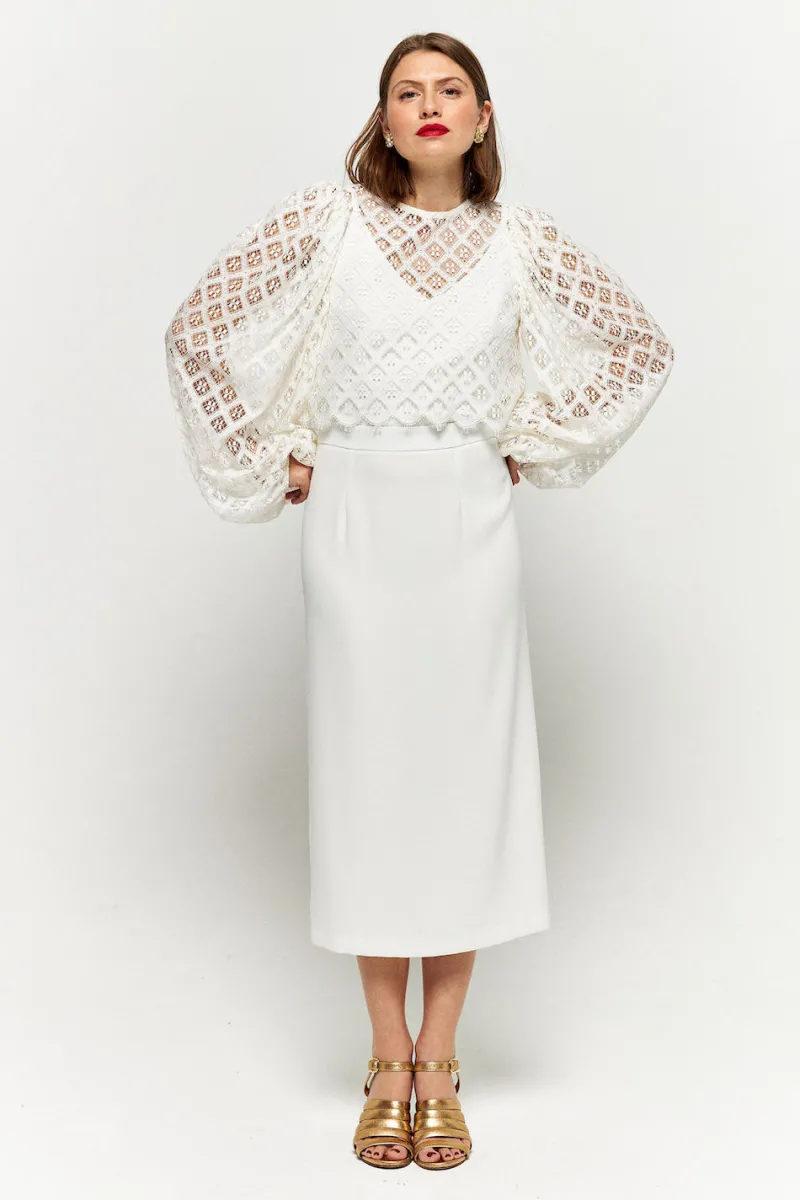 Minimaliste et épurée, la jupe Becky souligne la silhouette. Sa coupe droite est équilibrée par une fente à l’arrière pour offrir plus d’aisance aux mouvements.