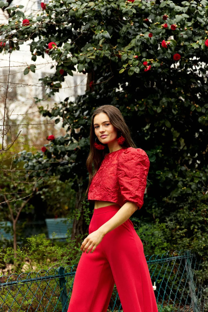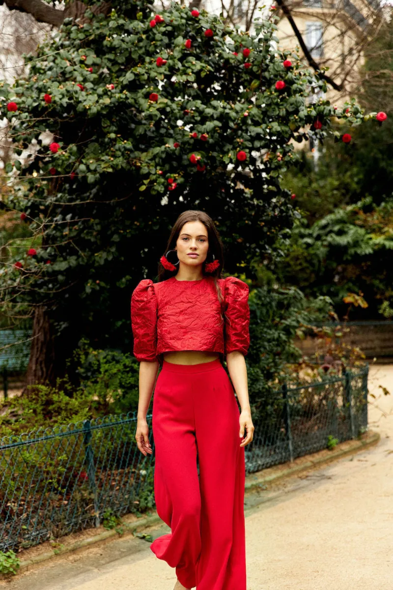 C’est le pantalon versatile par excellence, sa coupe oversize et fluide garantit une allure élégante et sophistiquée en toute circonstance. On le porte avec des tennis et un tee-shirt pour un look casual ou alors une jolie blouse et des escarpins pour un look plus sophistiqué. Son coloris rouge flamboyant égayera tous vos looks !