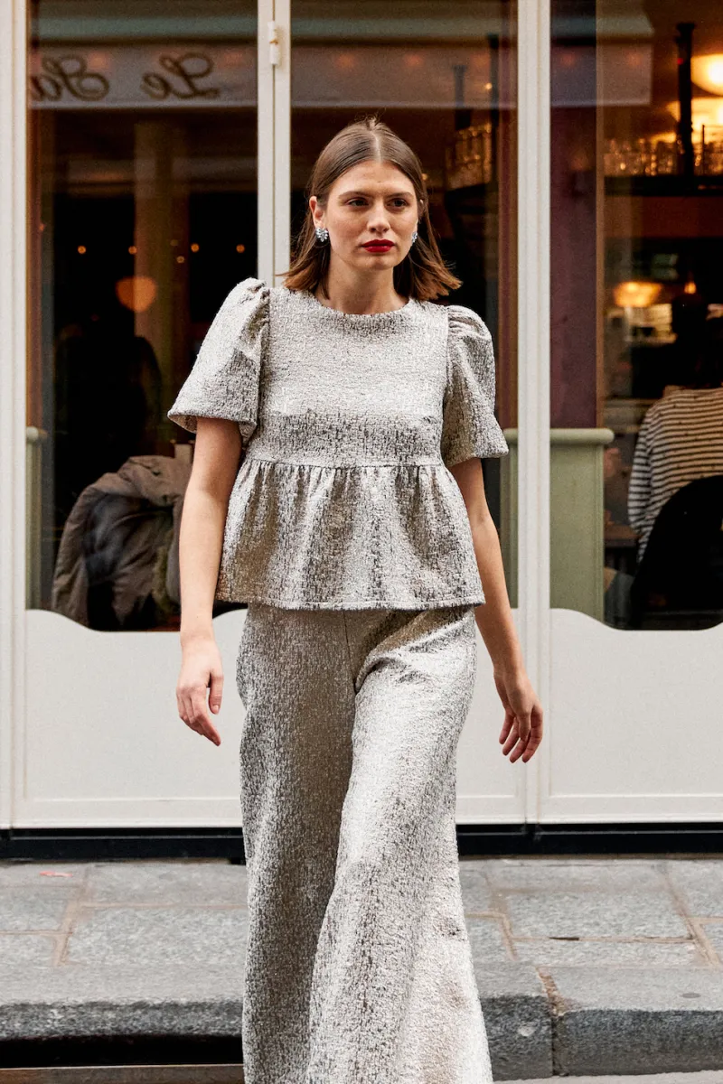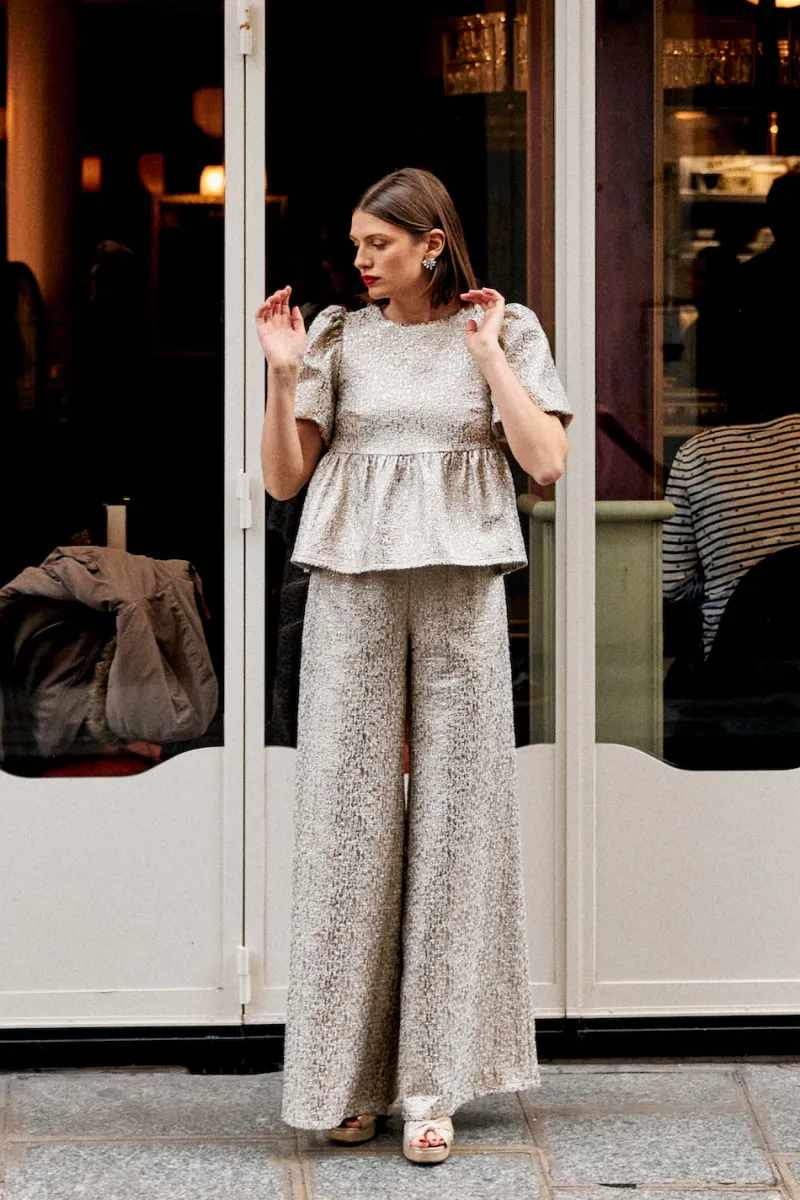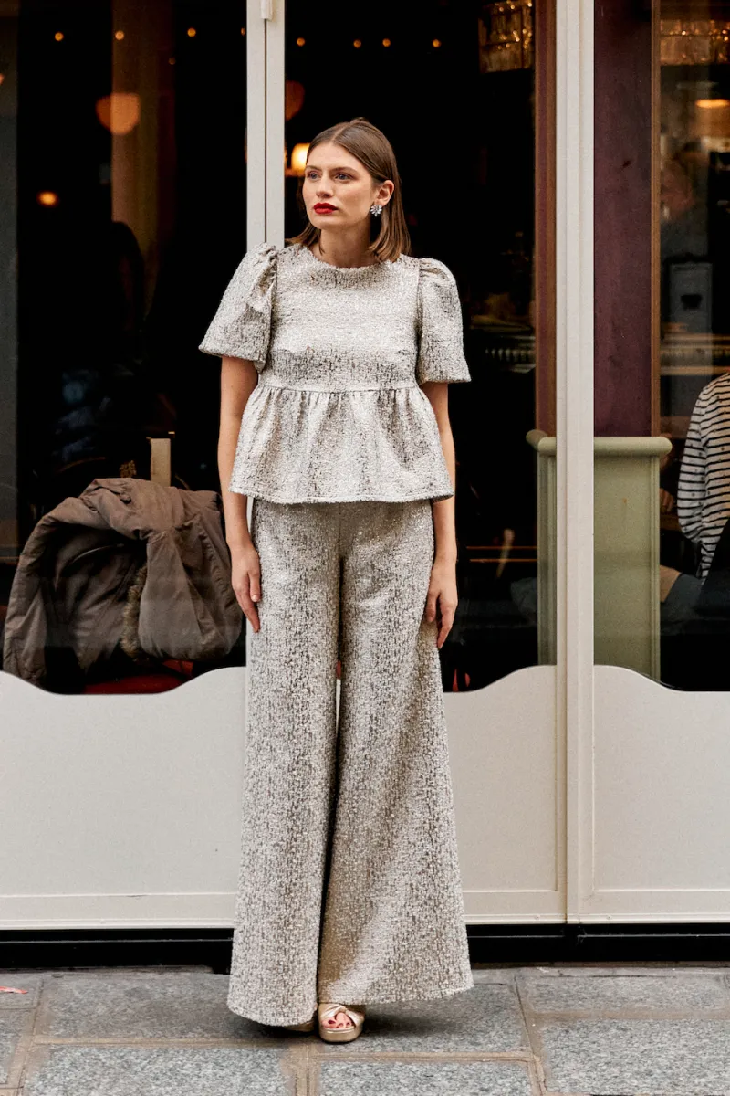 Le pantalon Twiggy en tweed est une pièce forte de votre garde-robe. Grâce à sa taille haute et ses jambes larges, il apportera élégance, modernité et lumière à votre tenue.