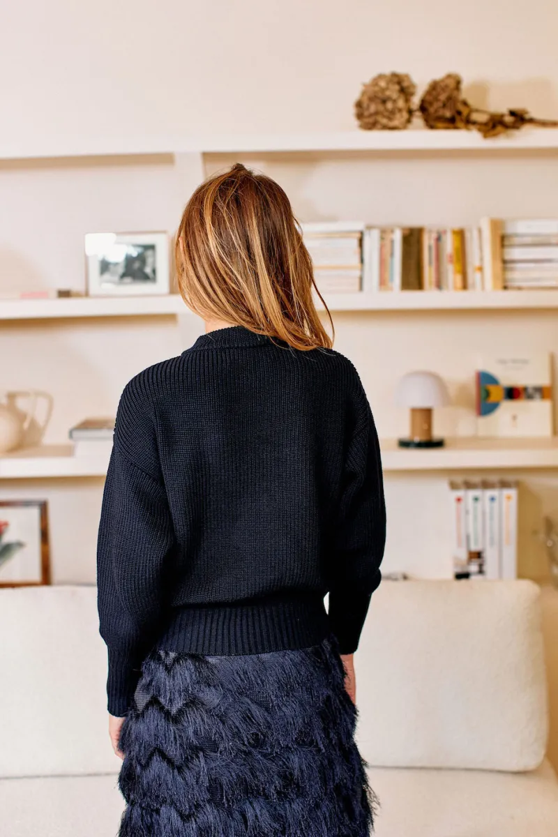 Indispensable de votre garde-robe automne-hiver, à porter aussi bien sur un pantalon que sur une jupe ou une robe. Notre pull Claude vous accompagnera tout au long de la saison.