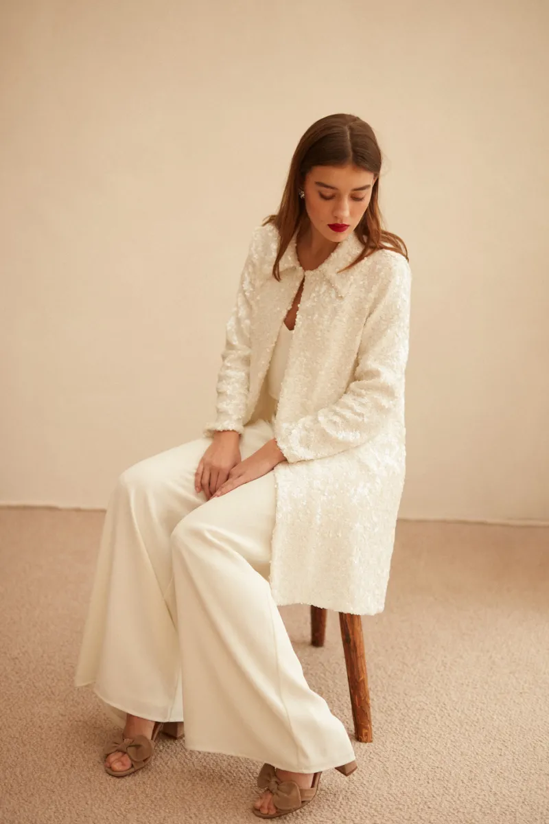 Manteau long en sequins mates.