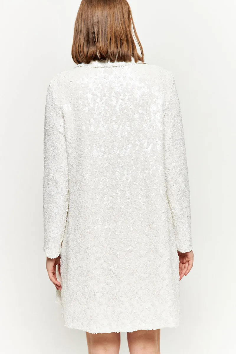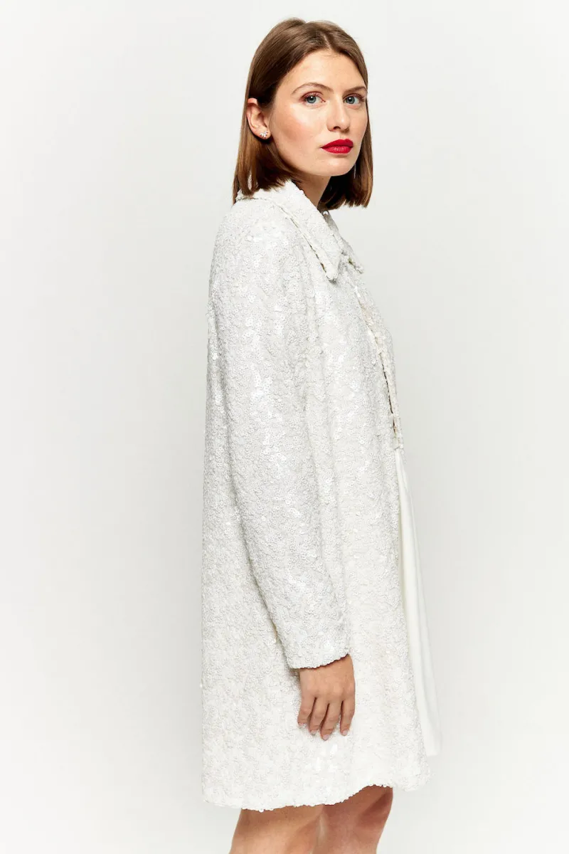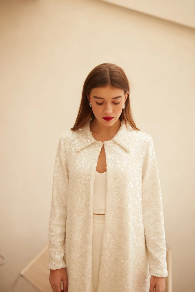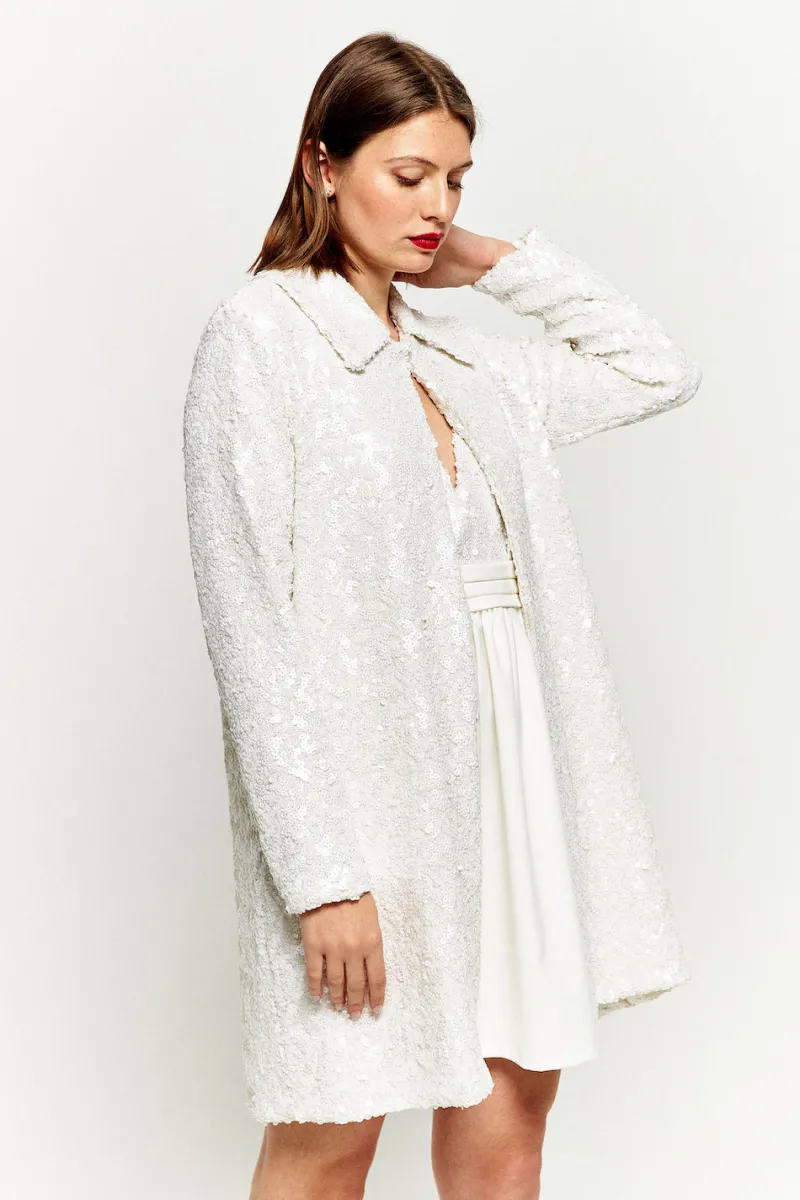 Découvrez notre tout nouveau manteau Santiago, entièrement recouvert de sequins. Ce modèle est parfait pour compléter un look total sequins, ou pour rehausser un look simple !