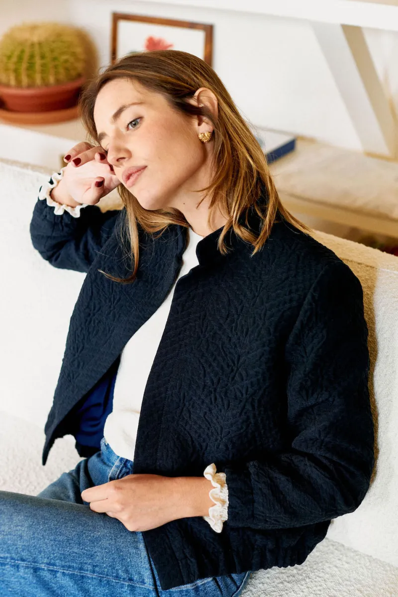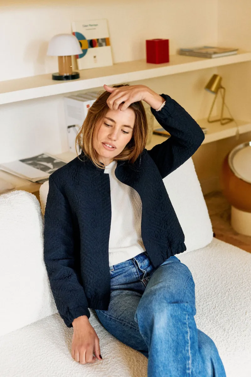 Veste de mi-saison à manches longues dans un tissu texturé.