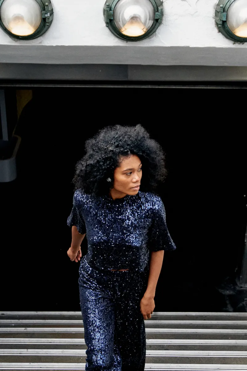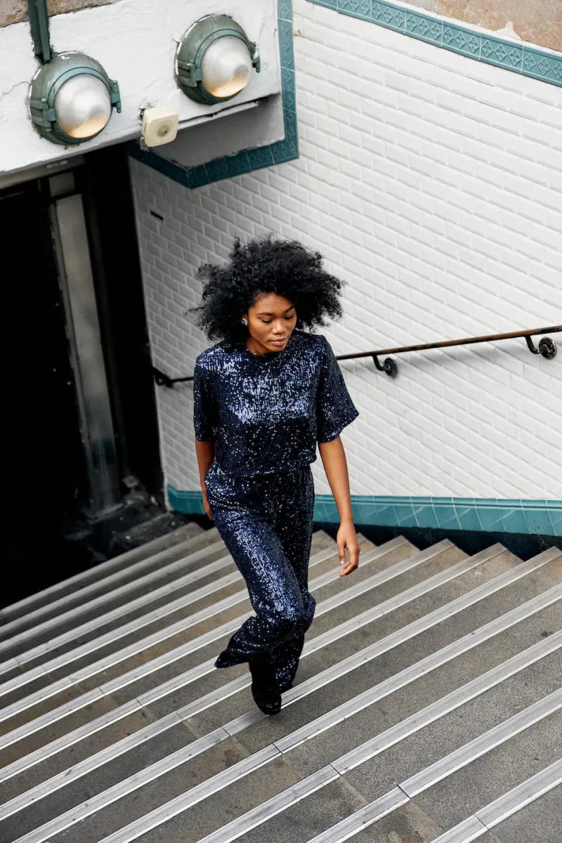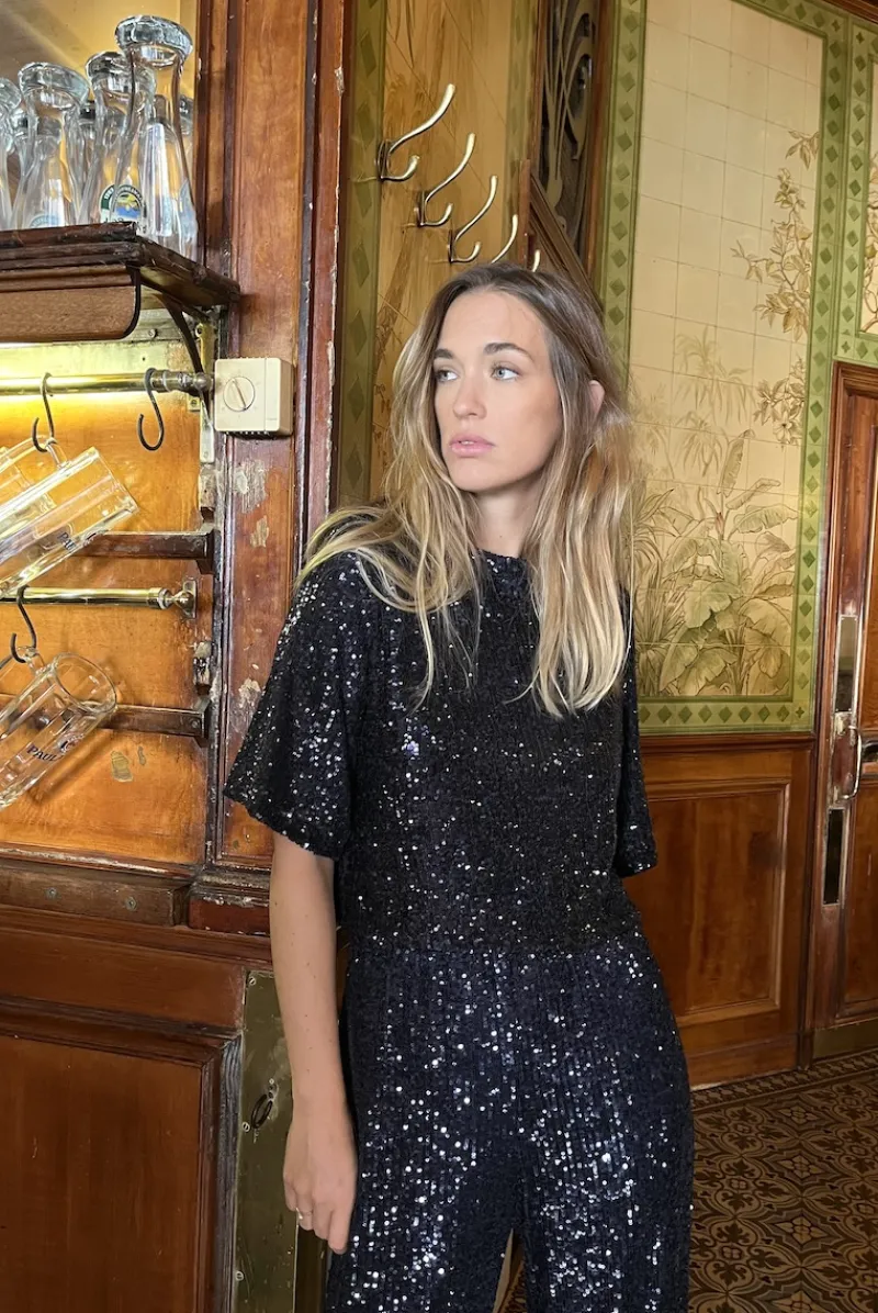La blouse Swing est LA pièce qui nous donne envie de danser jusqu’au bout de la nuit. On adore l’association des sequins et de sa coupe minimaliste qui s’inspire d’un simple tee-shirt. Faites ressortir l’allure de cette blouse avec le pantalon assorti ! Ce modèle ne nécessite pas de repassage.