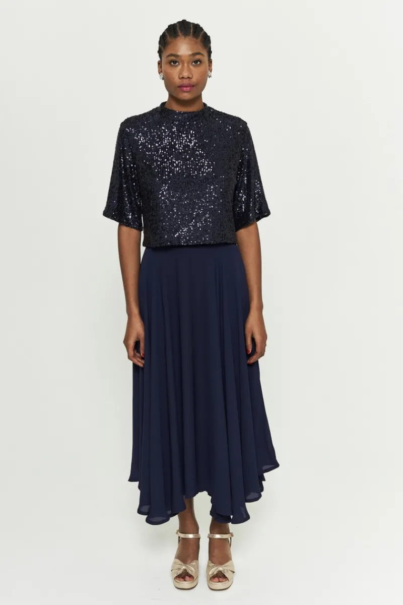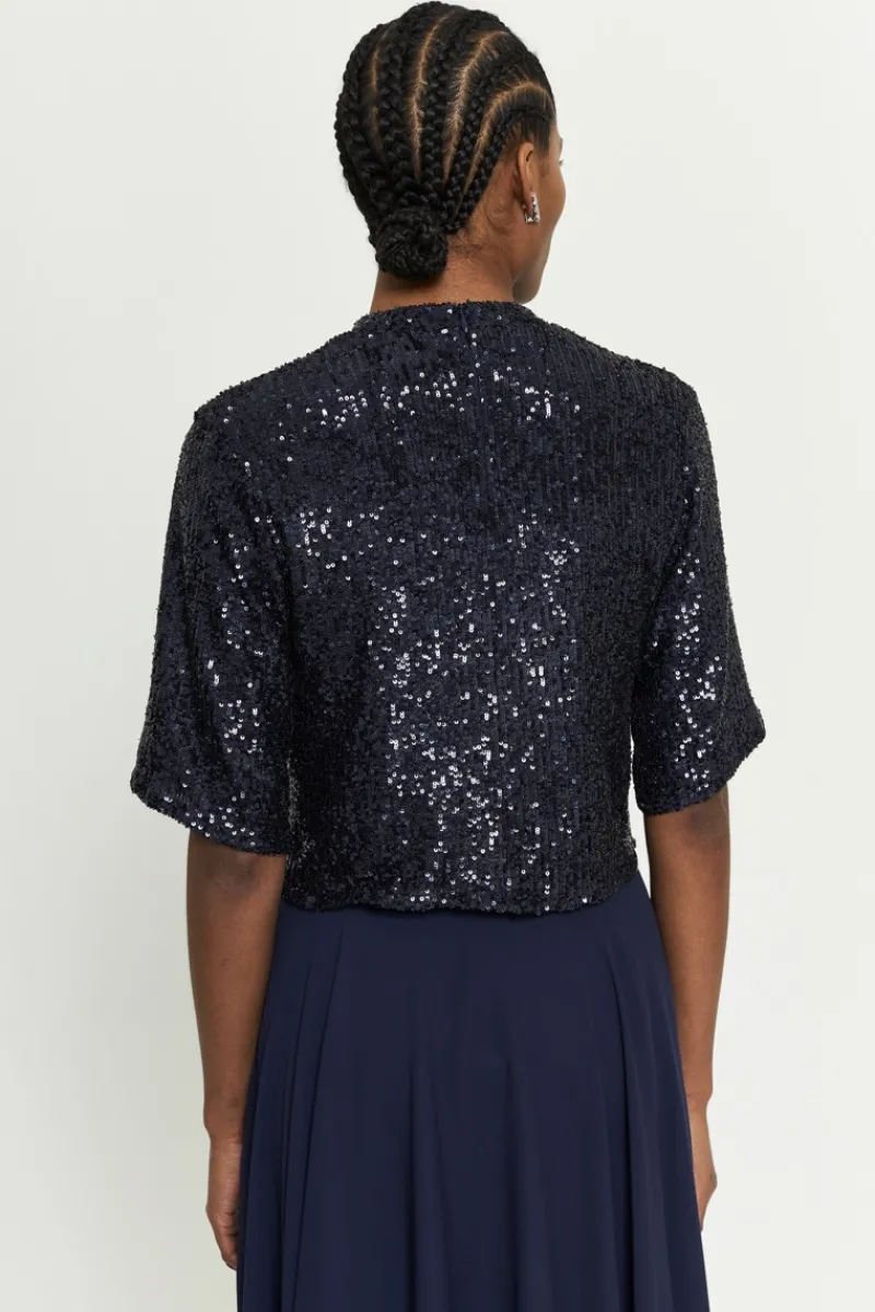 Blouse à sequins. Fermeture zip au dos.