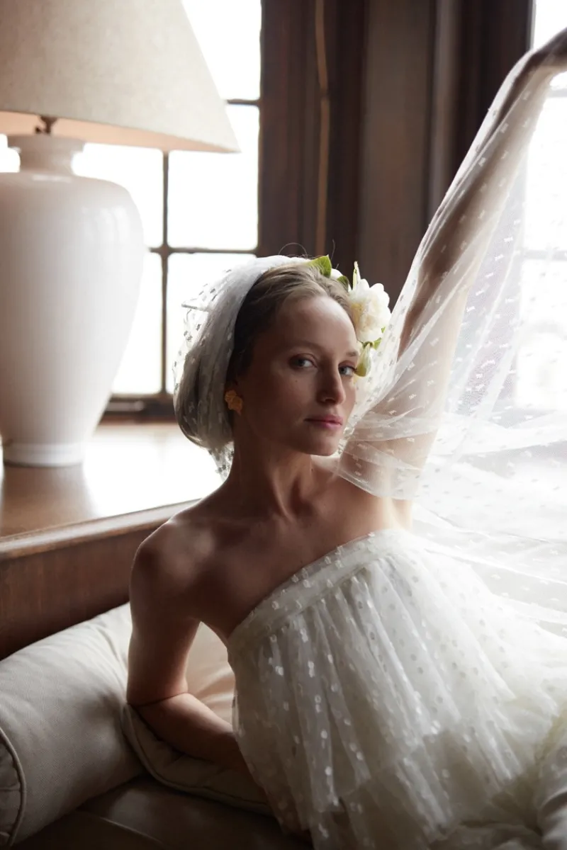On aime ce long voile en plumetis, romantique et aérien.
