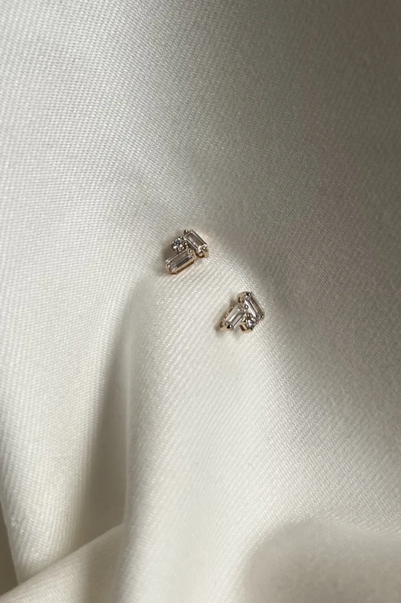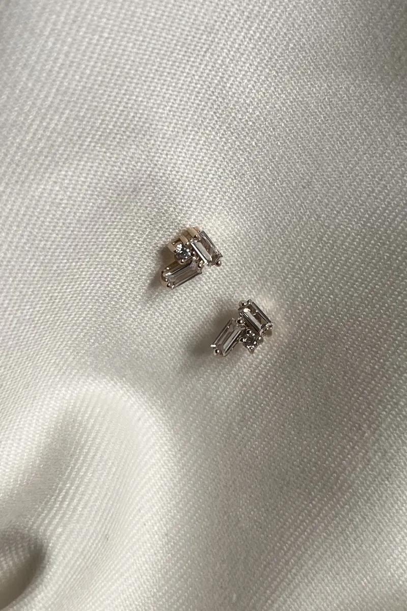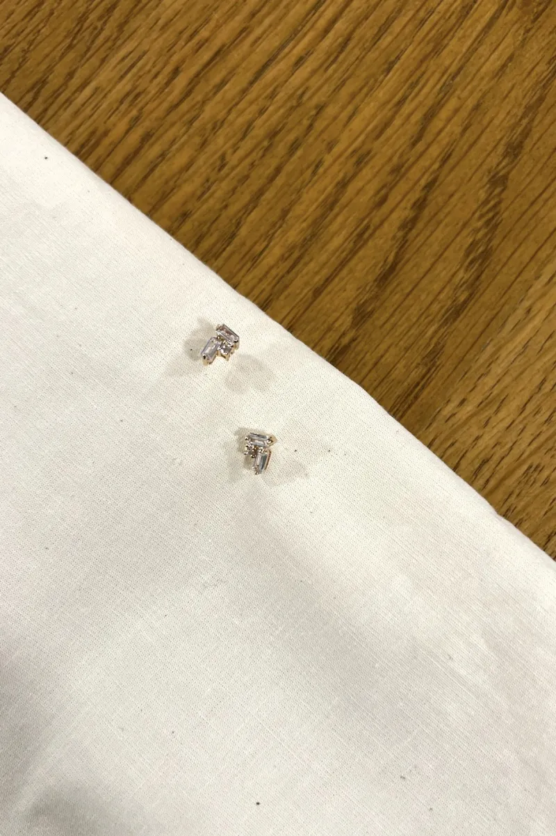 Boucles d’oreilles plaqué or serties de petits cristaux et d’une petite pierre.