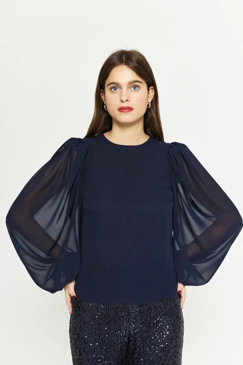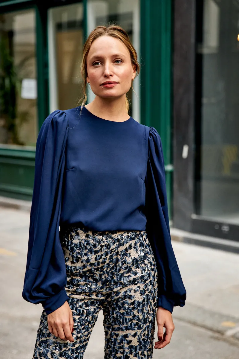 La blouse Georges est une pièce résolument féminine. Ses manches larges, d’une subtile transparence, et resserrées au niveau des poignets vous donneront une allure élégante et glamour.