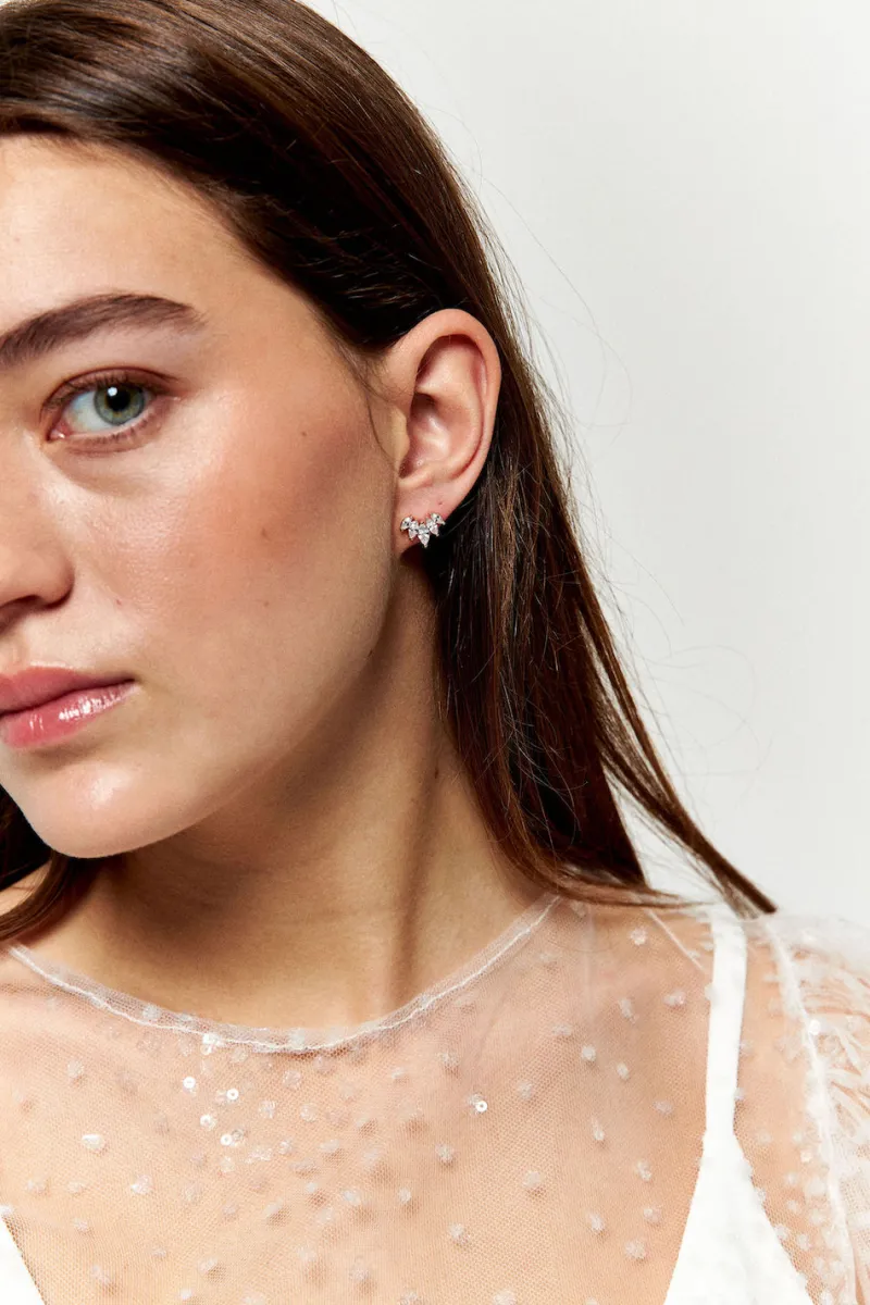 Boucles d’oreilles plaqué or serties de petits cristaux.