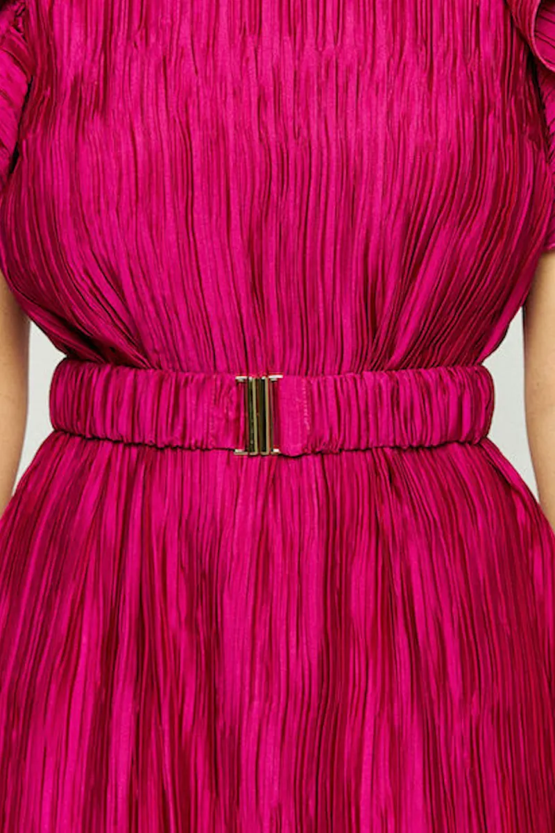 Ceinture élastique en tissu plissé fuchsia avec fermoir doré.