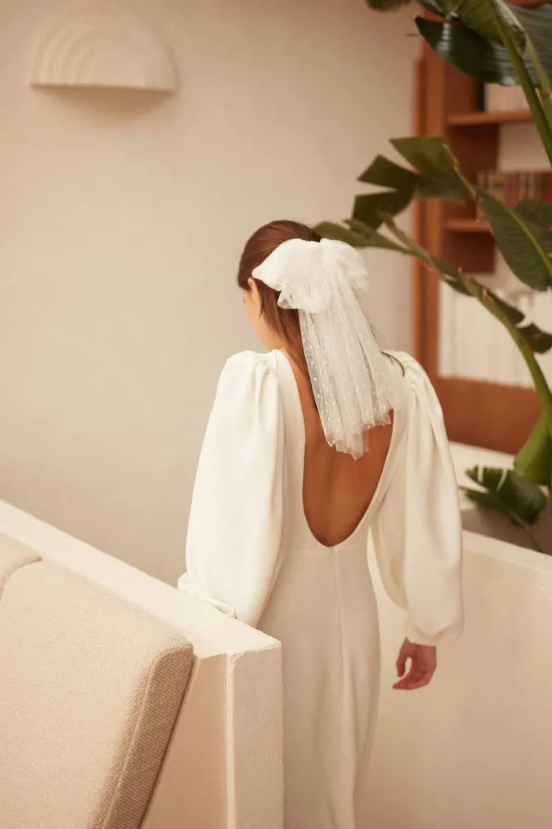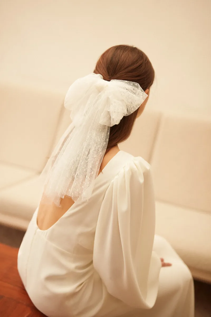 On aime le côté XL de cette barrette vaporeuse en plumetis ivoire que vous pourrez porter sur cheveux lâchés ou attachés.