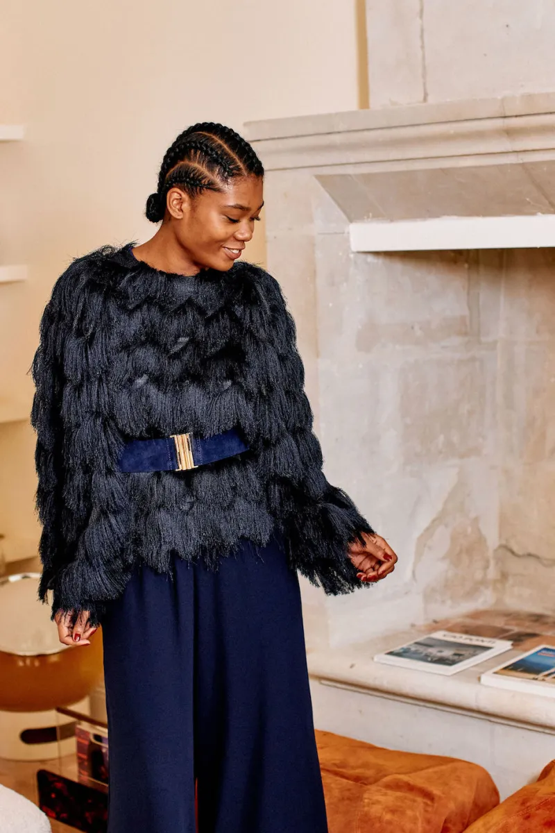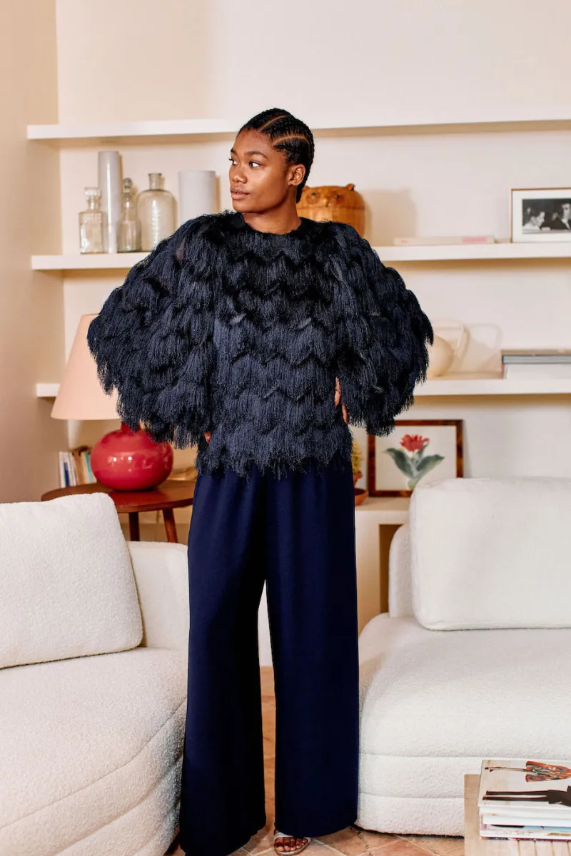 C’est le pantalon versatile par excellence, sa coupe oversize et fluide garantit une allure élégante et sophistiquée en toute circonstance. On le porte avec des tennis et un tee-shirt pour un look casual ou alors une jolie blouse et des escarpins pour un look plus sophistiqué. Sa couleur marine fait que vous pouvez l’associer avec tout ce dont vous avez envie.