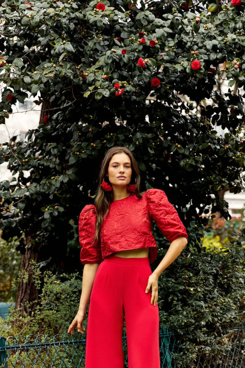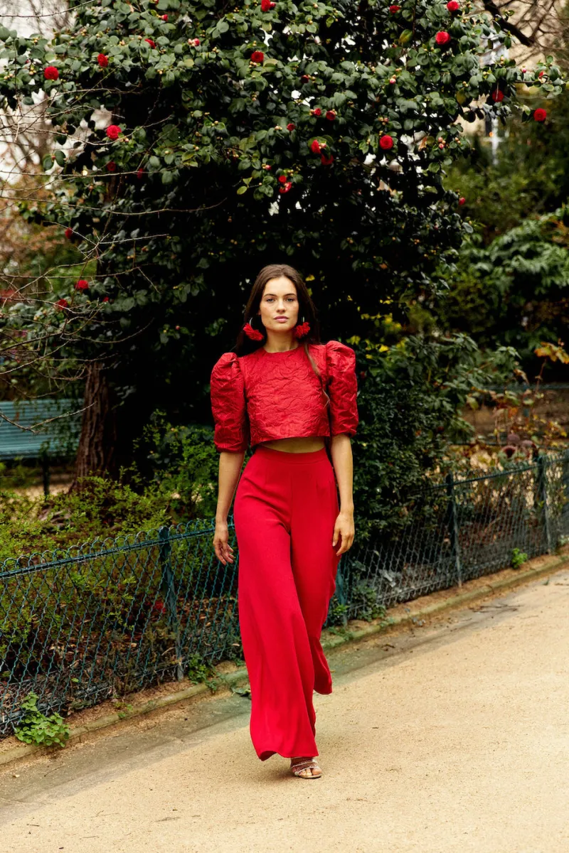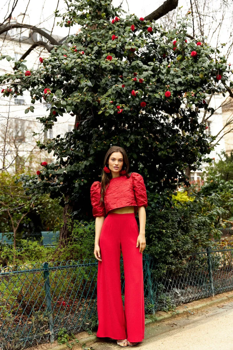 C’est le pantalon versatile par excellence, sa coupe oversize et fluide garantit une allure élégante et sophistiquée en toute circonstance. On le porte avec des tennis et un tee-shirt pour un look casual ou alors une jolie blouse et des escarpins pour un look plus sophistiqué. Son coloris rouge flamboyant égayera tous vos looks !