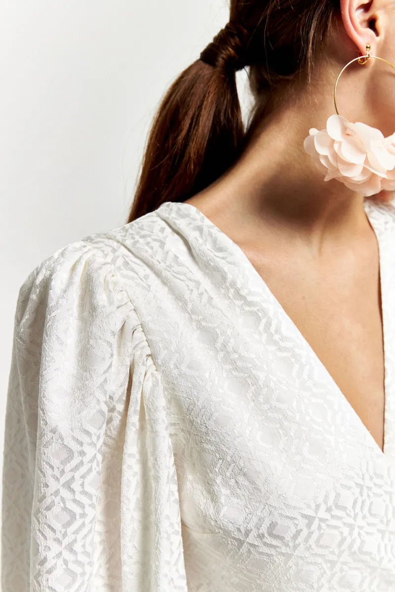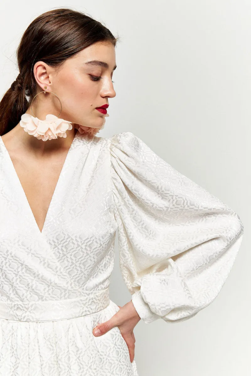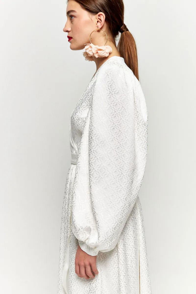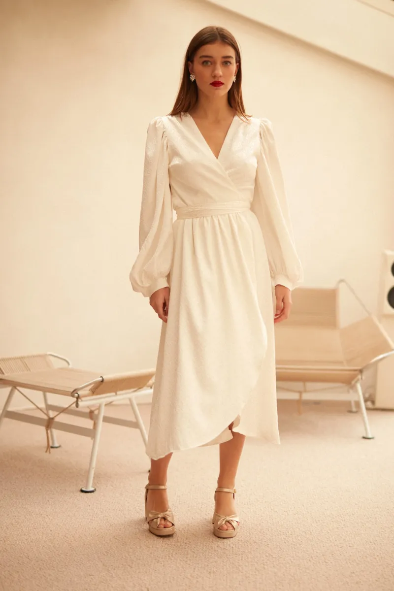 Entièrement en soie satinée à motifs, la robe Greta allie sophistication et élégance. Avec sa fermeture portefeuille, elle s’ajuste parfaitement à votre silhouette et vous met en valeur.