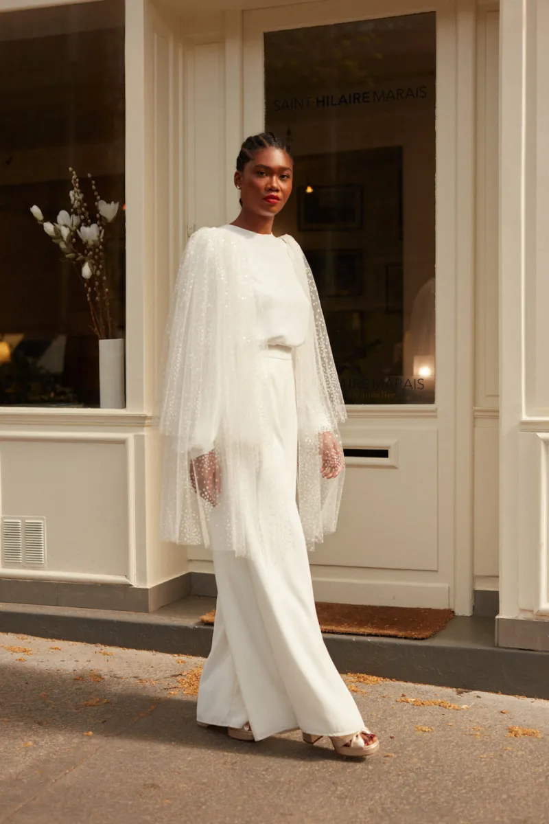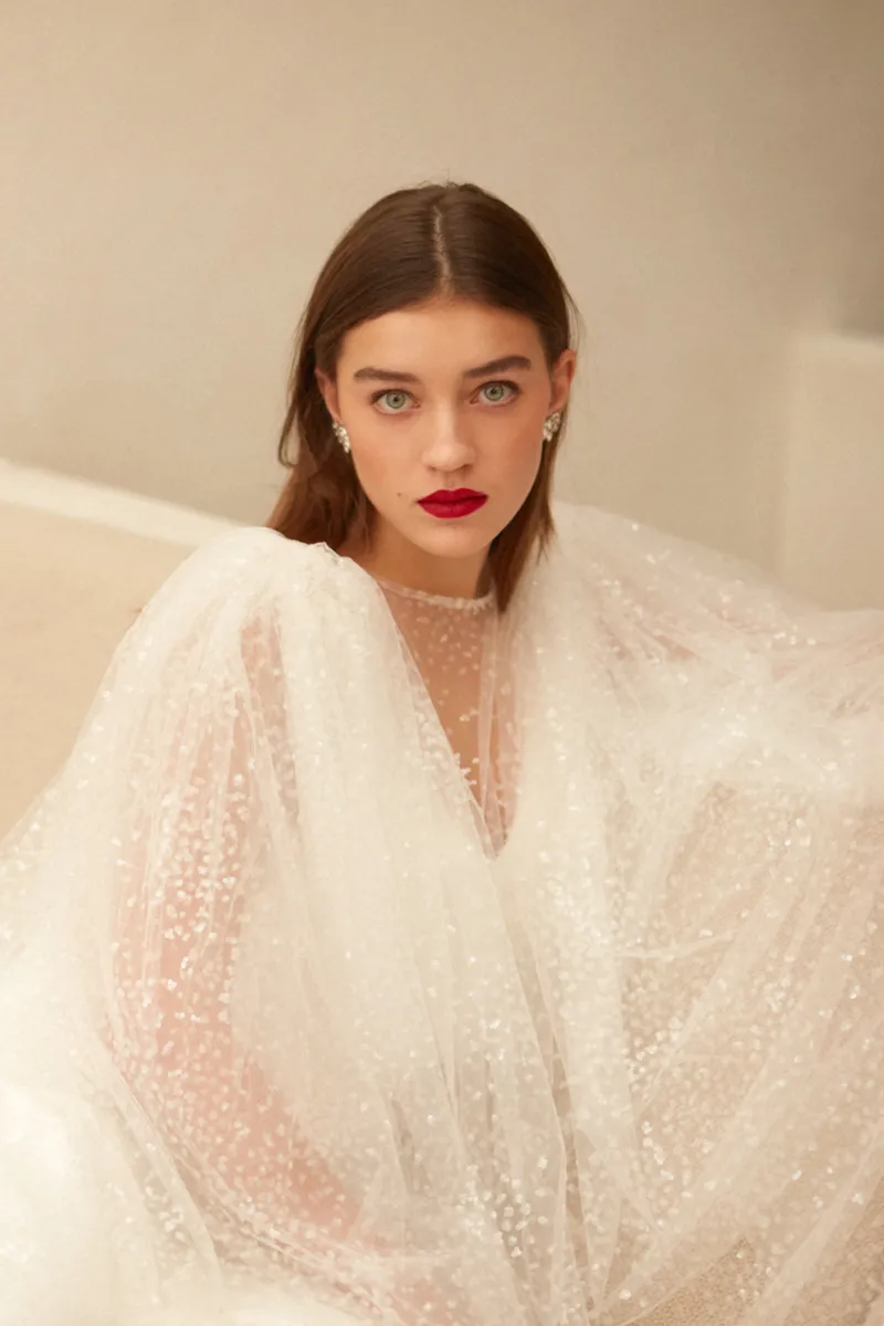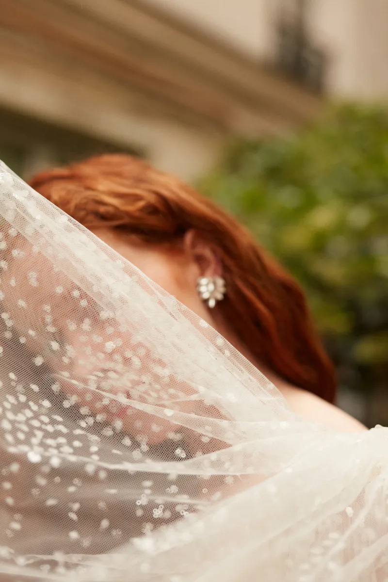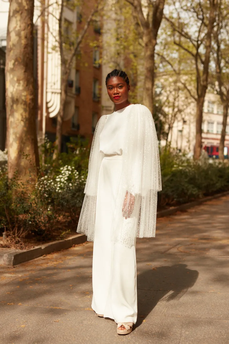 On aime ces longues épaulettes et la douce transparence du tulle parsemée de sequins qui leur donne un effet de pluie de paillettes.