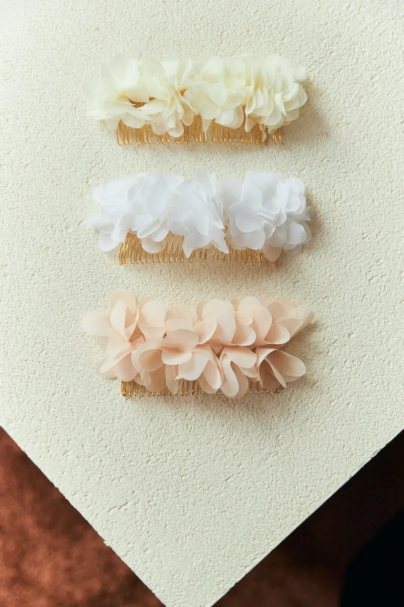 On aime les pétales d’organza qui offrent un côté aérien et romantique aux coiffures.