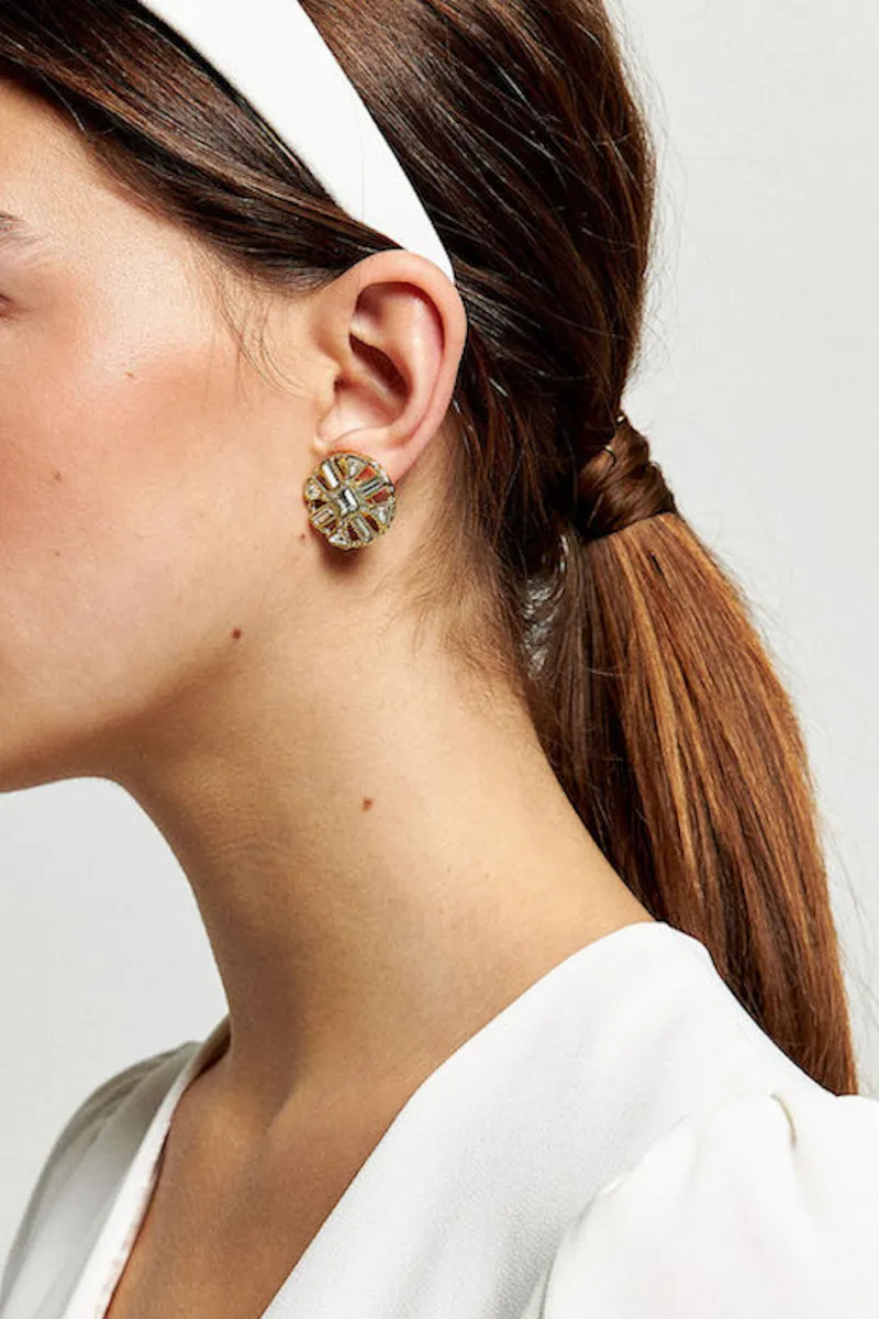 Boucles d’oreilles en laiton et cristaux sertis.