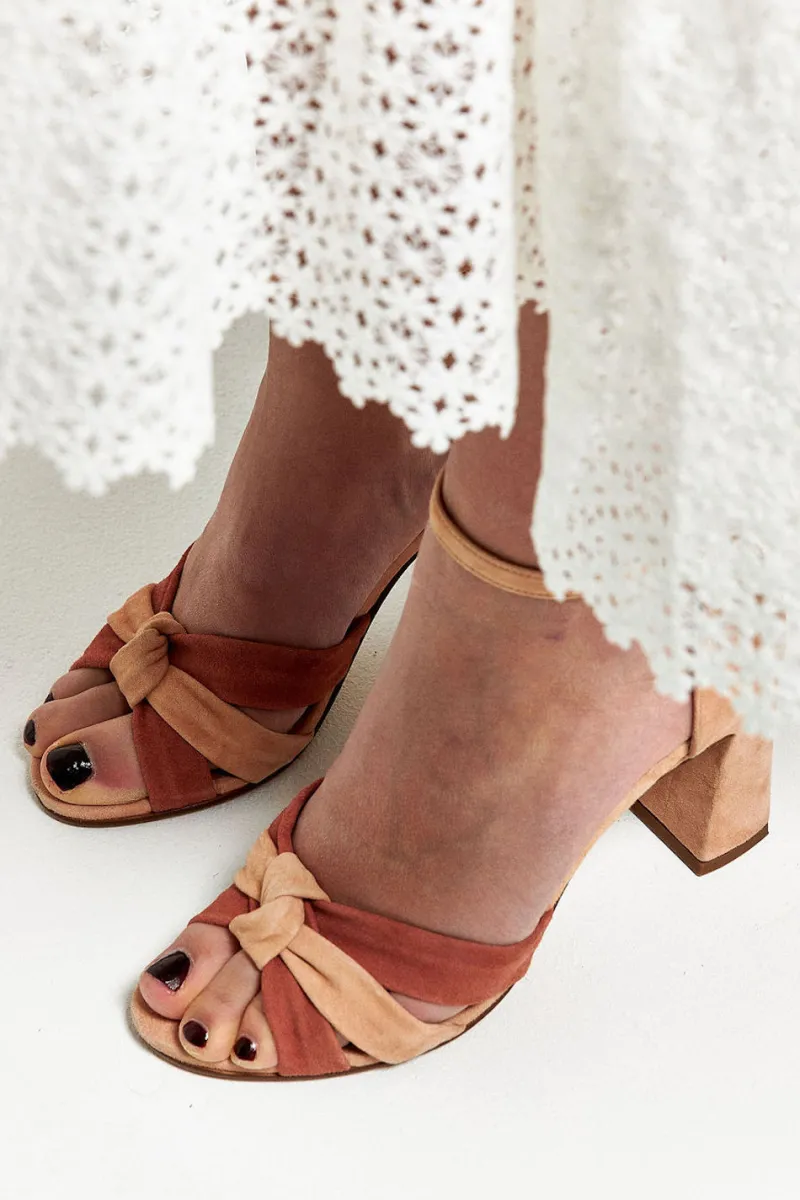 Escarpins à talon en chèvre velours rose pâle et rose blush.