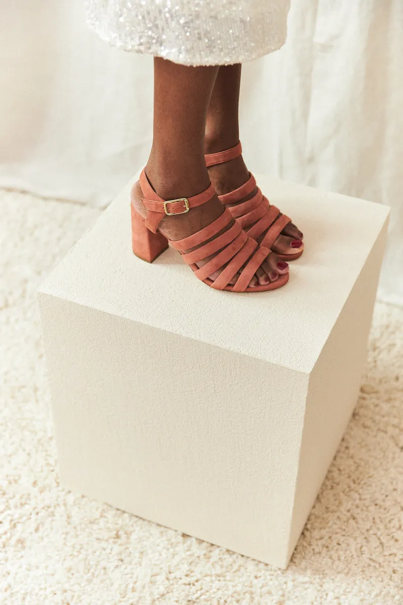 Escarpins en daim rose blush.