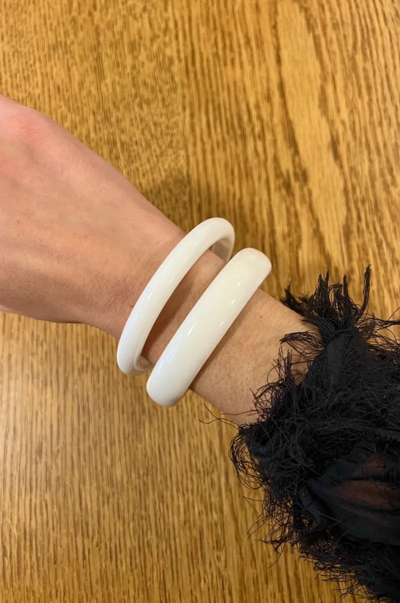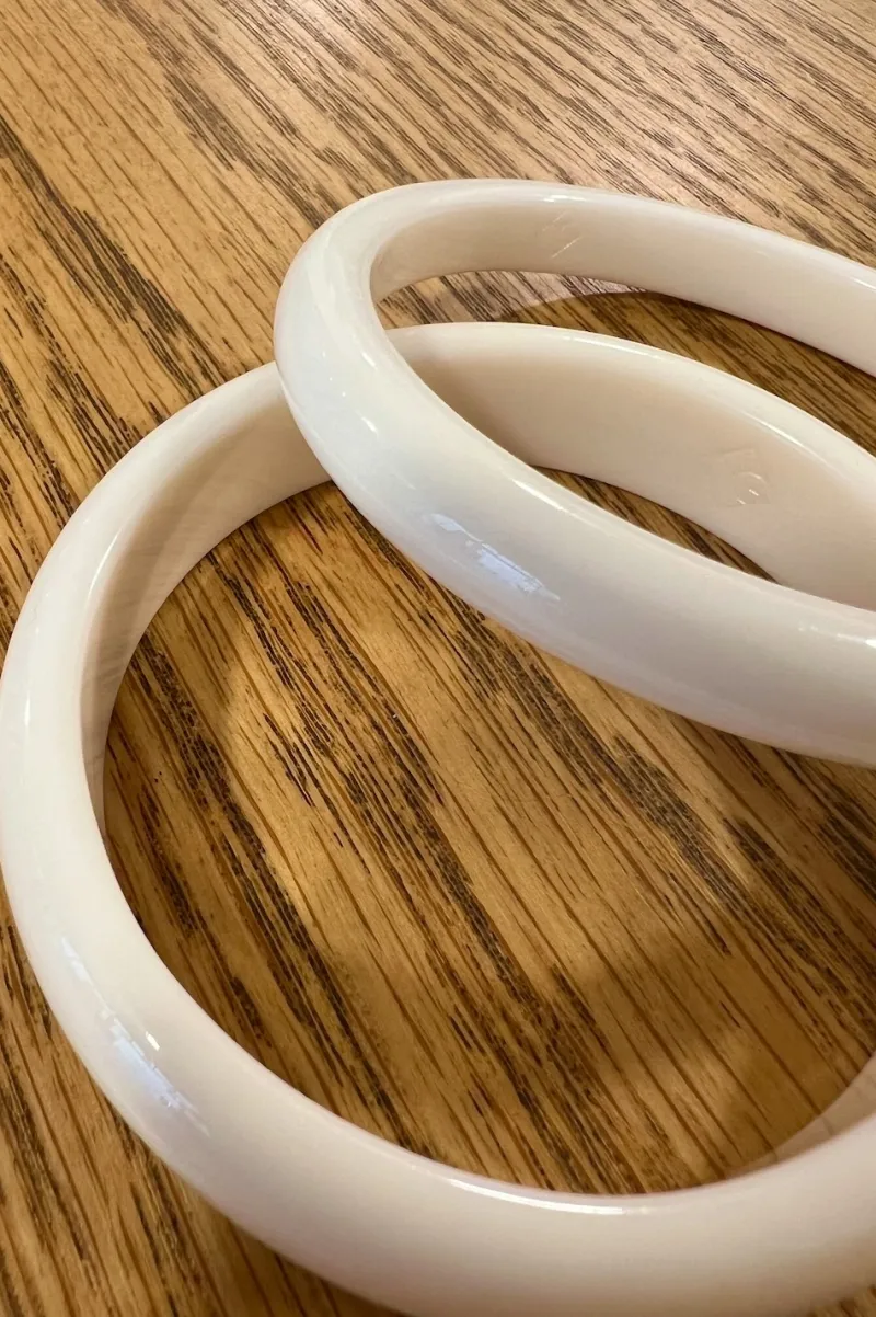 Le set des deux joncs en résine ivoire sont de deux largeurs différentes.
