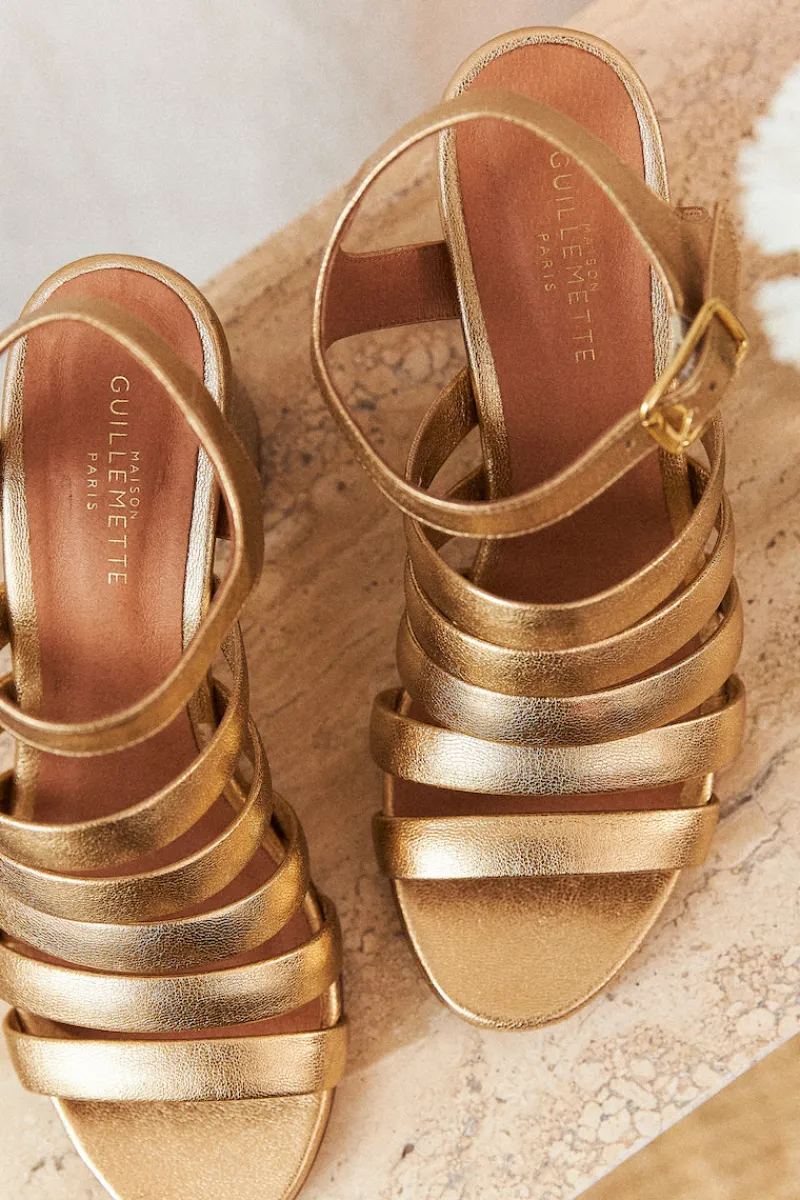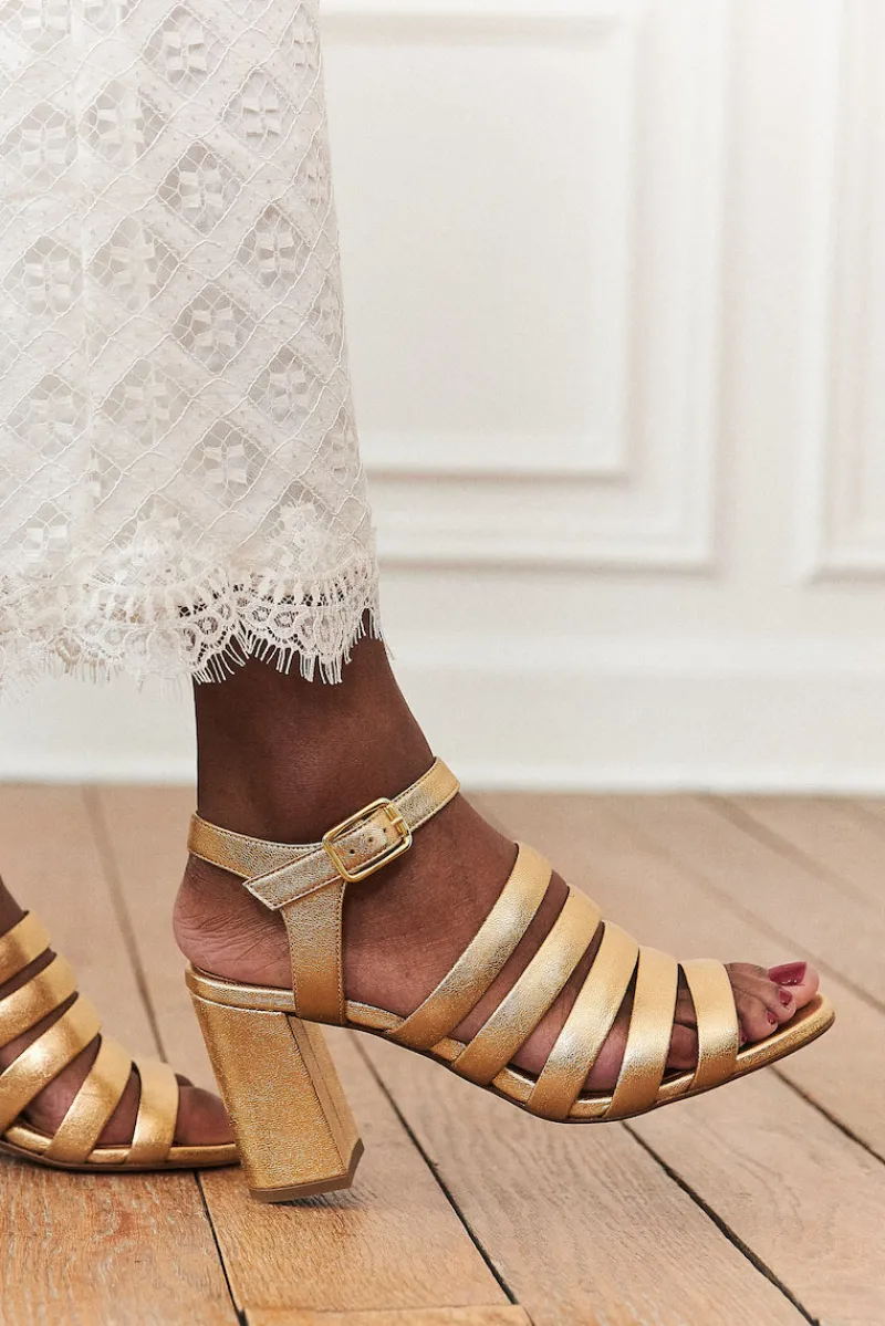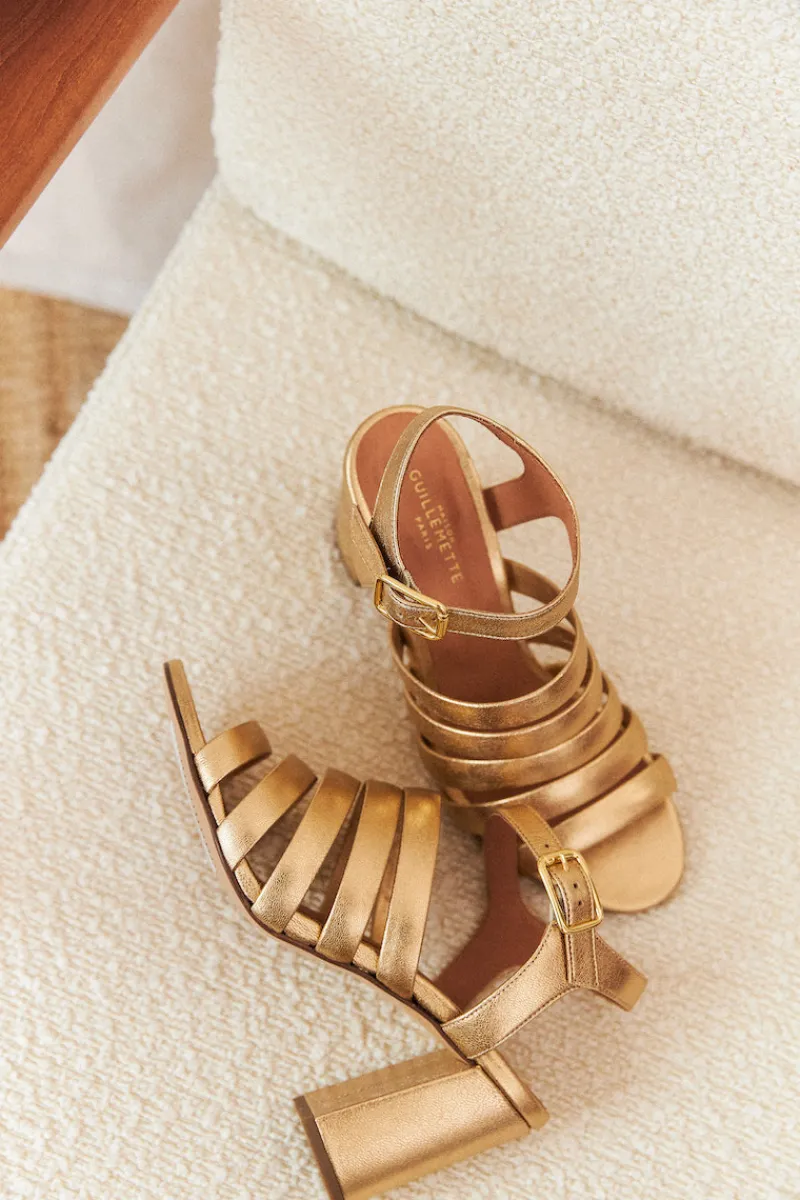 Escarpins en cuir doré.