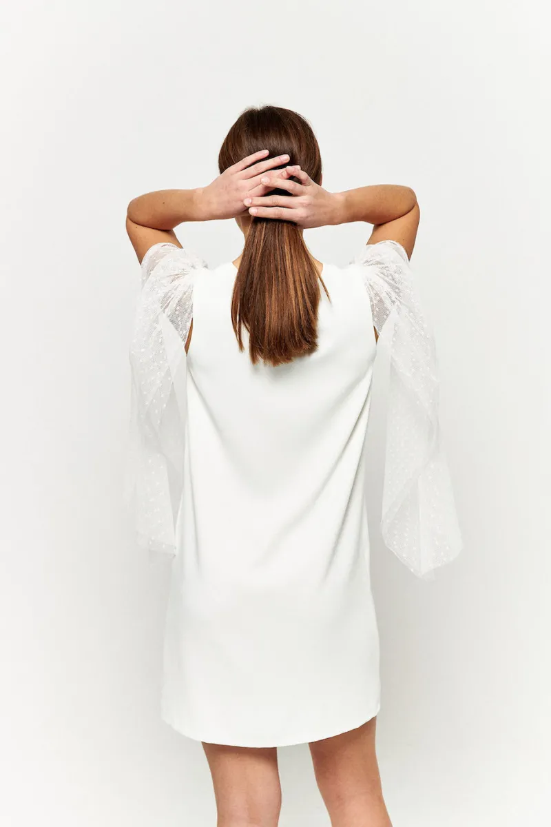 La mannequin a un tour de poitrine de 87 cm et un tour de hanches (là où nous sommes le plus large) de 97 cm. Elle mesure 1,75m et porte la taille S.