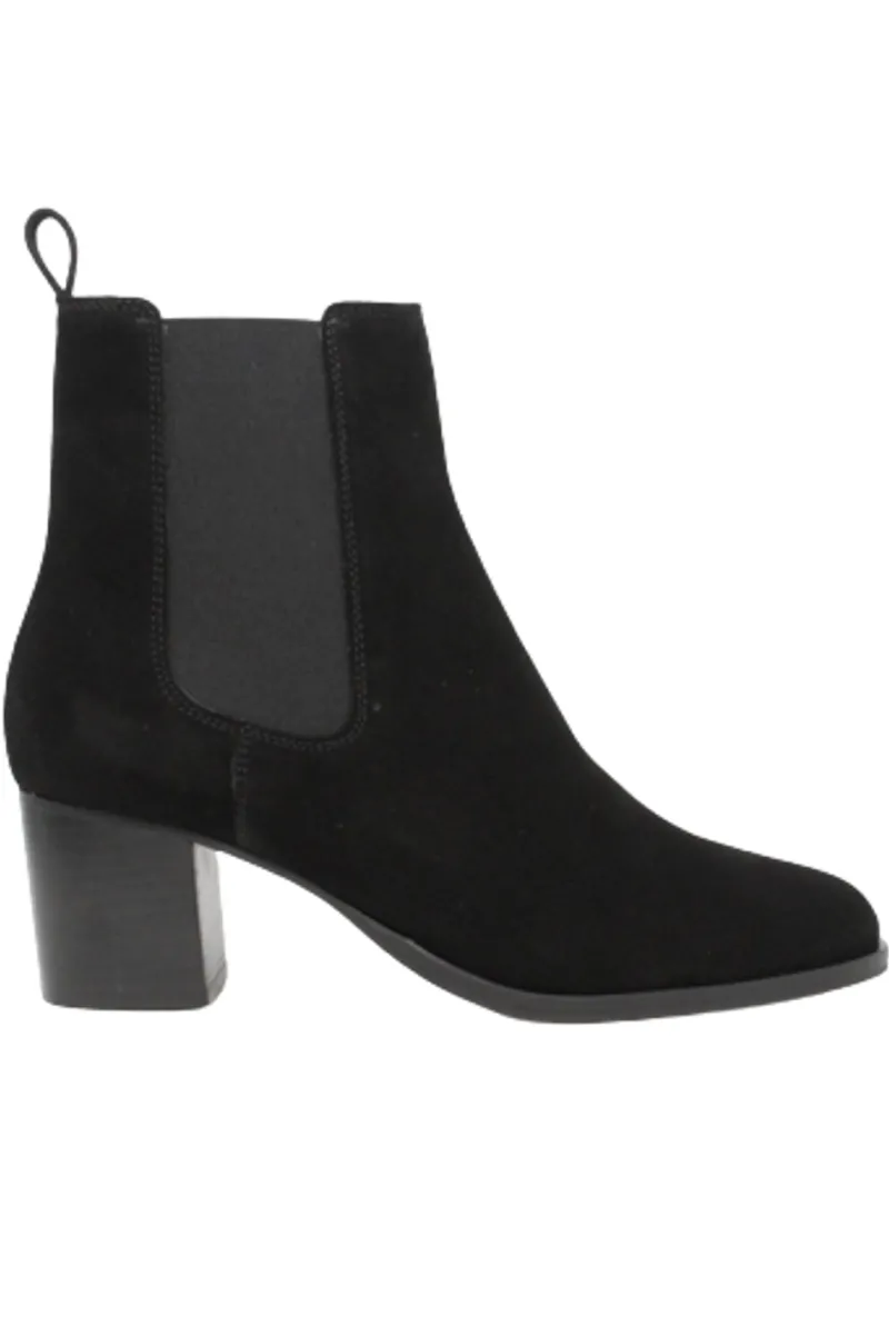 Bottines à talon en daim noir.