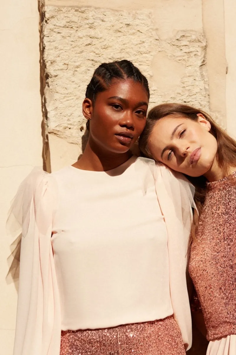 Paire d’épaulettes en tulle rose pâle.