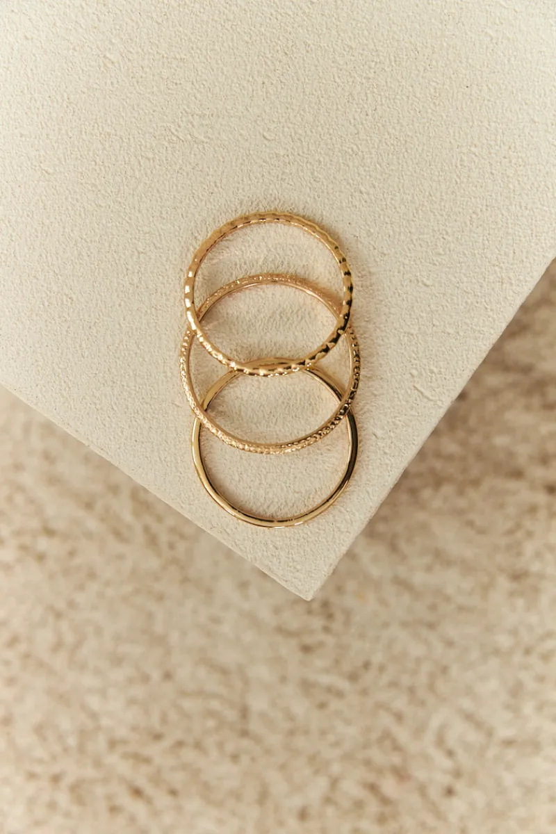 Set de trois joncs en métal doré texturé.